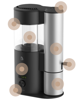 One of the challenges of roasting coffee at home is to deal with the byproduct, chaff. We have tackled this issue by creating a "Chaff Collector" with ease. The chaff will be slipped into and stay inside the removable collector located on top of BeanBon during roasting. By simply pulling off the top cover, lift the collector, and dump the chaff to the trash bin, it is no longer a pain in the neck to discard the chaff.